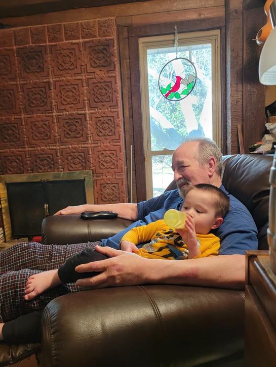 He adored his grandchildren deeply. Whether it was stocking up on their favorite snacks (Audri was popcorn and apple juice for Henry), watching a movie they loved, or sharing his chair, he made sure they felt cherished in his presence.